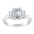 The 2-1/4ctw (1-1/2ct Emerald Cut Center) Lab Grown Diamond Hidden Halo Engagement Ring features a breathtaking emerald-cut lab-grown diamond as its centerpiece with accenting trapezoid cut lab grown diamonds. These cuts are renowned for their elegant and modern shape, creating a flattering and sophisticated look on the finger.