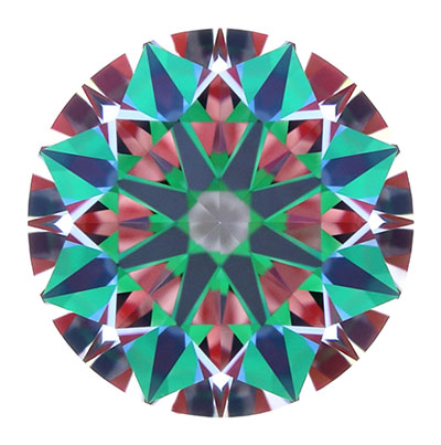 Precision faceting is visualized as Hearts & Arrows when round brilliant cut diamonds are viewed in specific lighting conditions. Each pattern is the result of superior facet placement and exact alignment.